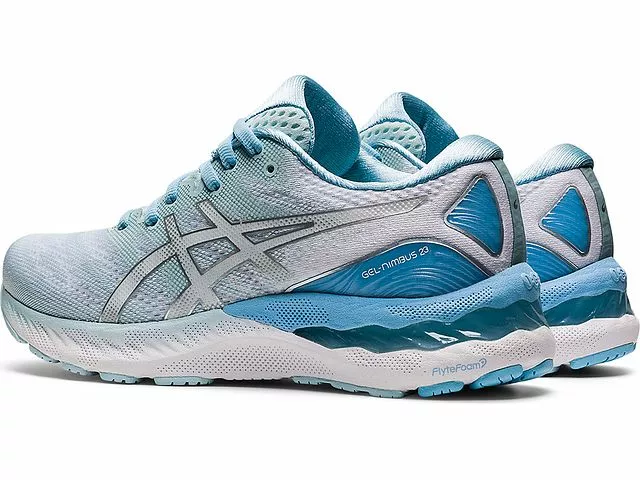 Featuring FlyteFoam technology, the GEL-Nimbus 23 provides lightweight cushioning that energizes each step, propelling you forward. Additional GEL technology cushioning in the midsole absorbs shock and limits impact on joints. 3D space construction in the footbed promotes compression in the heel, encouraging smooth, heel-toe transitions.