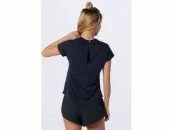 The athletic cut provides enough movement for added breathability without sacrificing a flattering fit. The high-low hem, side slits and cutout back detail all work to increase ventilation and add to the featherlight feel of the jacquard material.