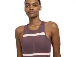 - A higher neckline and longer length help keep you comfortably covered from warmups through cool downs.
