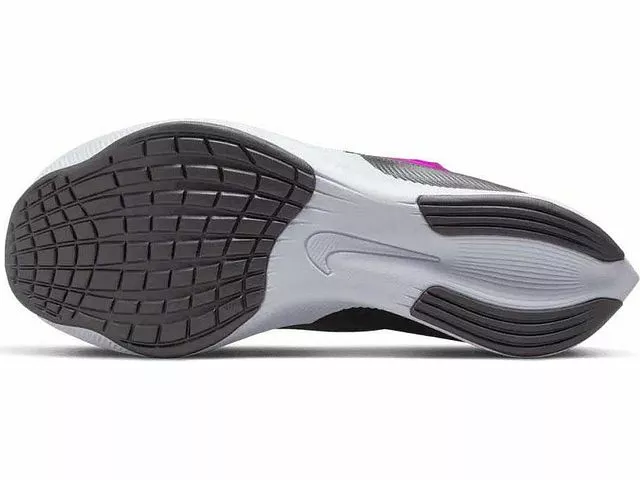You will feel snug and secure in this Nike Zoom Fly 4. The upper conforms to your foot for a sock-like feel and is made with lightweight mesh for a softer and more breathable shoe. Four pieces of webbing work with the laces wrapping around your midfoot for a tight, secure feel. There is also NikeFlyknit around the collar to make the shoe easier to put on and take off.