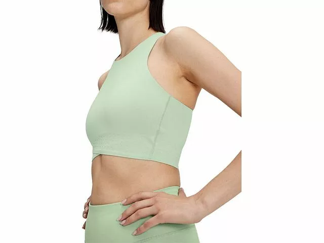 Putting in the work can be sweaty, but this top has you covered. A mesh liner above the chest and perforations in the underband give you the breathability to keep you comfortable. The lightweight fabric, moisture wicking materials and racerback style will keep you cool as the competition heats up. Plus, our reviewers loved the smooth and sleek feeling of this crop top in our On Spring Apparel review.