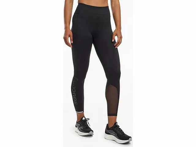 Calibrated to provide support without restrictions, the Saucony Fortify High Rise â…ž Tights stay with you for the long haul (or run). These tights will stay put and hold everything in throughout your run or fitness class with their smooth, high-rise waistband. The fashion-forward tights feature ultra-stretchy and supportive recycled nylon that fits like a second skin.