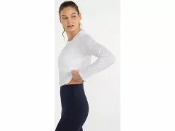 Ready for anything, this long sleeve shirt has a high crew neck, slightly boxy fit, straight bottom hem and cropped length. It is soft and classic for running errands and has everything you need to workout—it’s breathable, lightweight, moisture-wicking and has UPF 50+ sun protection.
